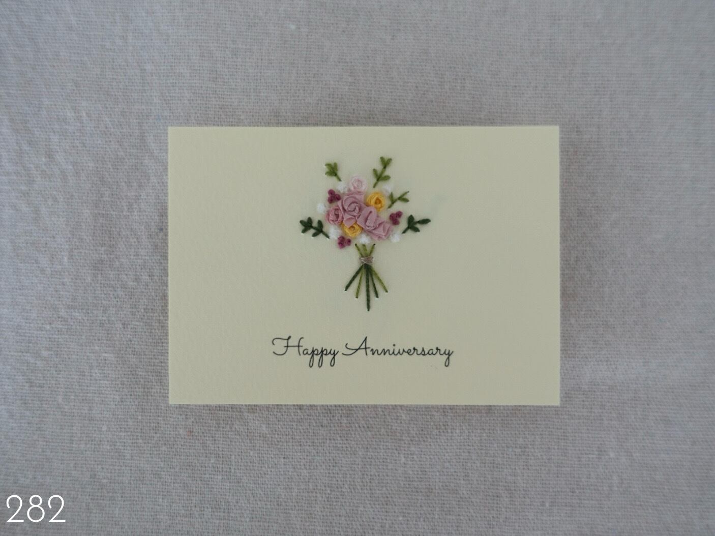 No.282 花束の刺繍/ブーケ/リボン刺繍/お祝いカード