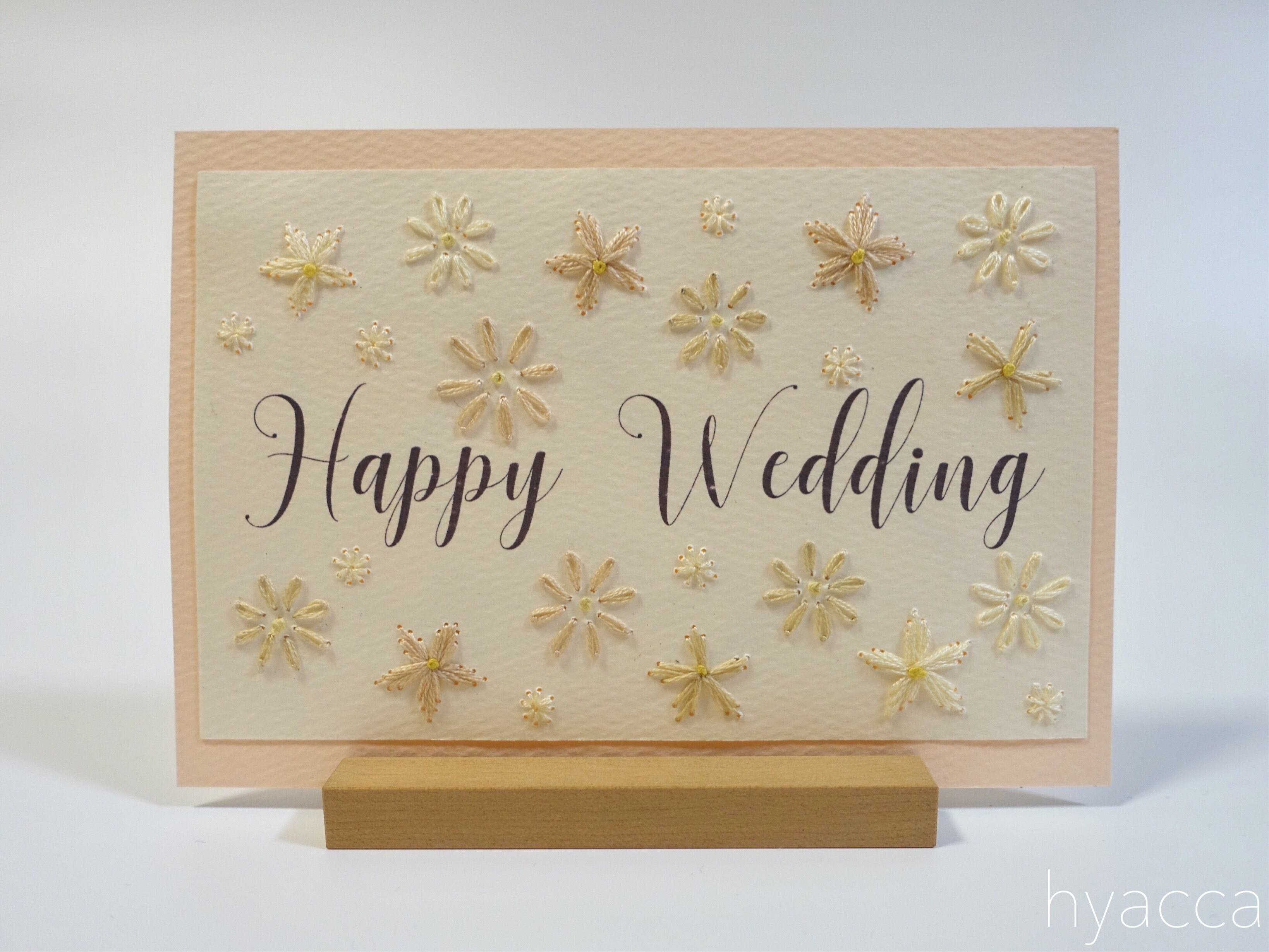 “Happy Wedding”の文字の周りをお花で飾ったカード。